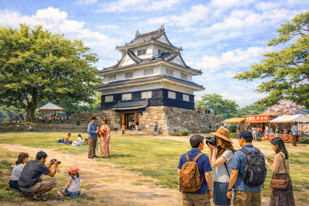 春には桜が咲き、多くの花見客が訪れるほか、海外からの旅行者が日本の城の歴史に興味を持って見学する姿も珍しくありません。