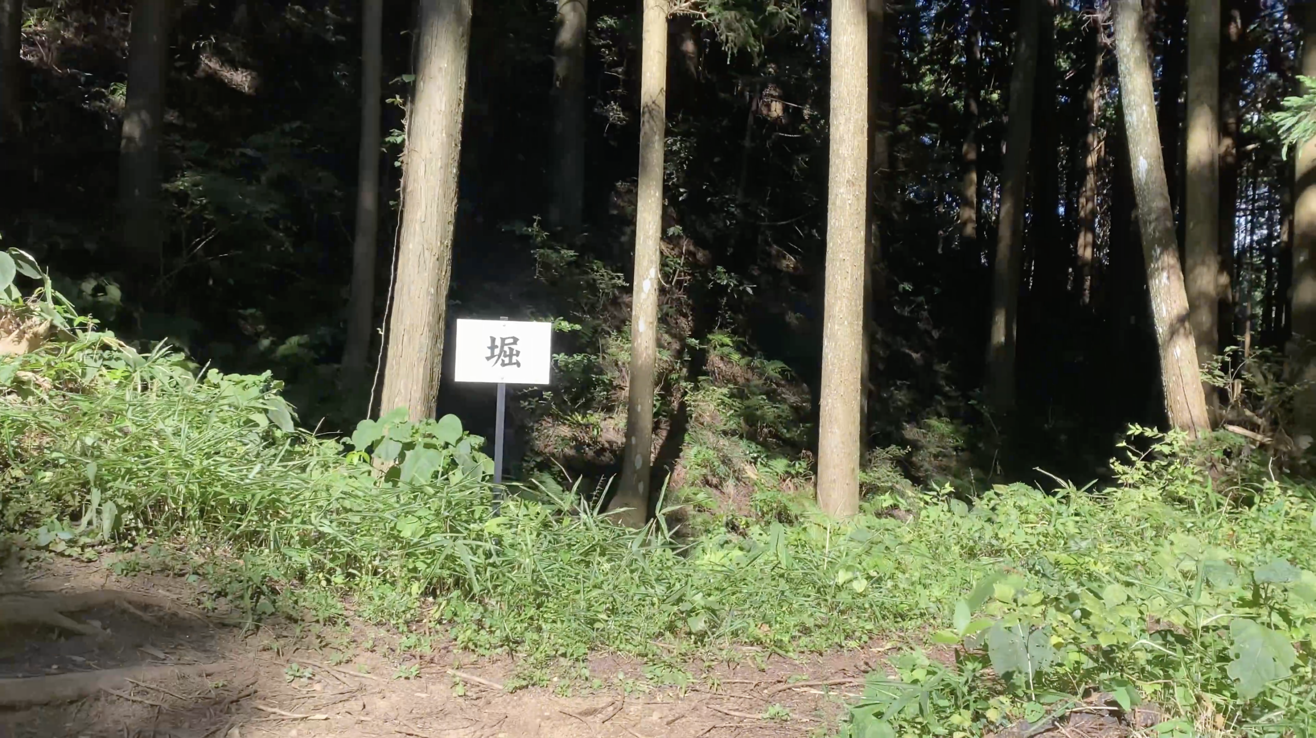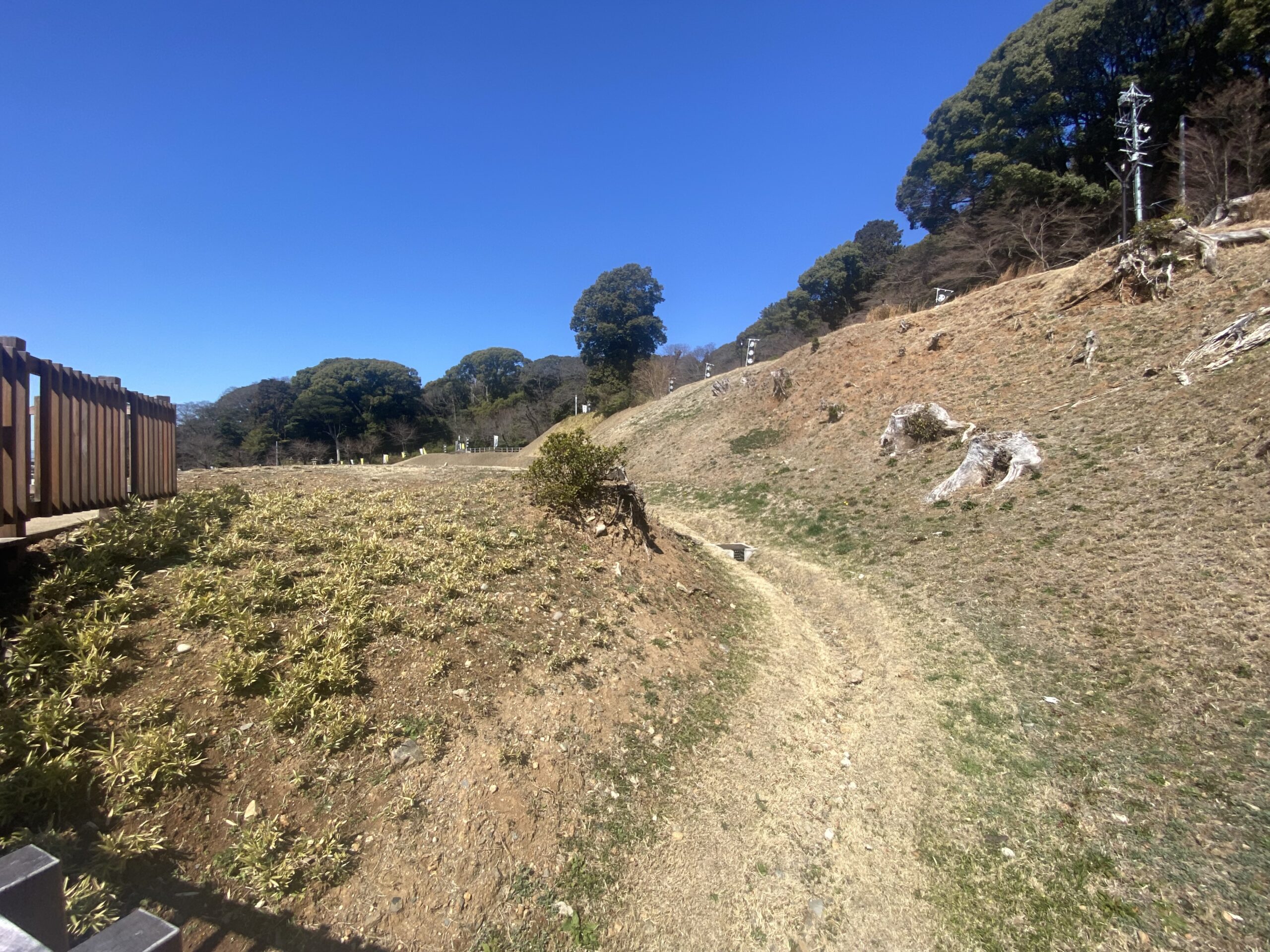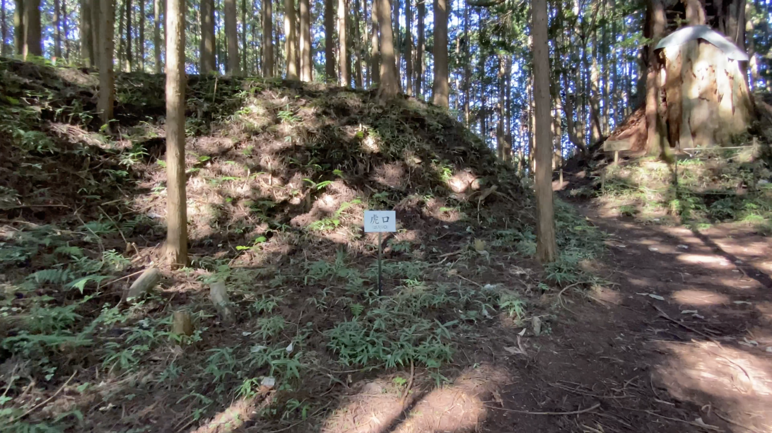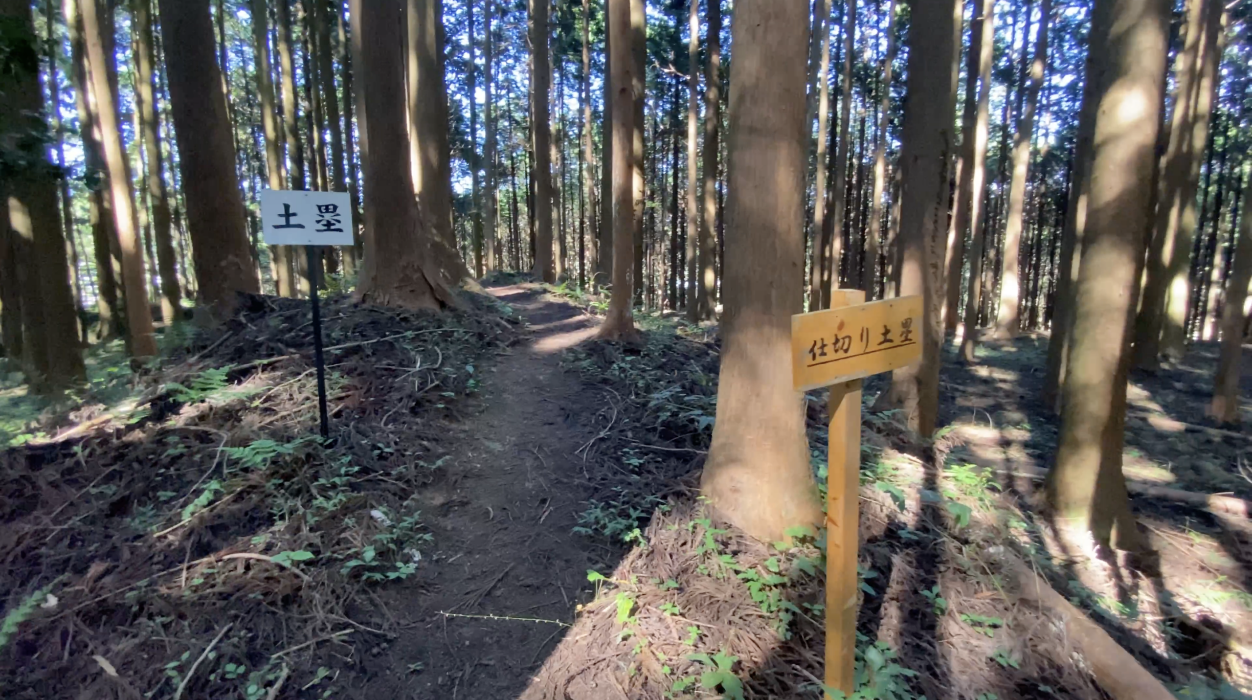 道の途中には「虎口」「土塁」「堀」といった案内板が点在しており、それぞれの遺構の役割を知りながら歩けるようになっています。