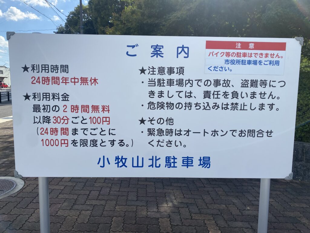 車でお越しの方は、小牧山史跡公園北東側に専用駐車場がありますので利用することができます。